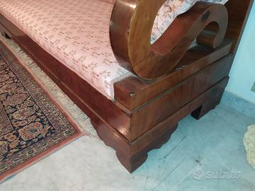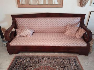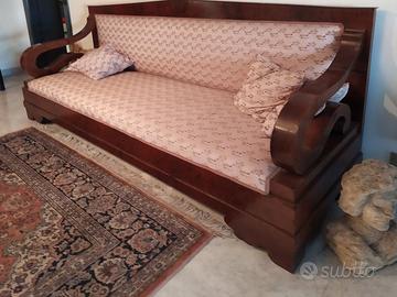 Divano antico fine '800 napoletano restaurato e rivestito tutto in seta di San Leucio originale, completo con 4 cuscini stesso tessuto.
