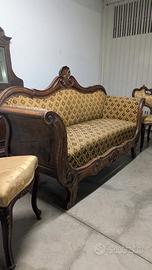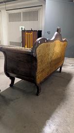 Vendo (svendo) divano antico da due posti a "barca" in noce e velluto , fine ottocento.