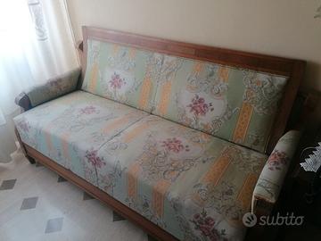 Divano di noce pregiato, inizi Novecento. Restaurato finemente. Rivestimenti impeccabili.