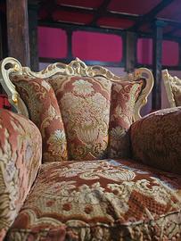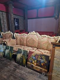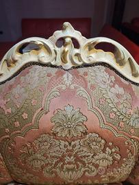 Divano Antico in ottime condizioni. Tessuto rosa Antico e struttura in legno bianco panna.