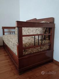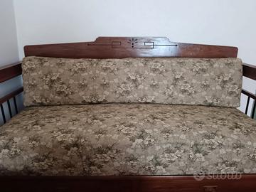 Divano in legno, è un antico divano che può diventare un lettino da 170 cm di lunghezza.