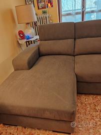 Divano Aran grigio fumo, angolare con penisola lato destro e recliner elettrico lato sinistra.