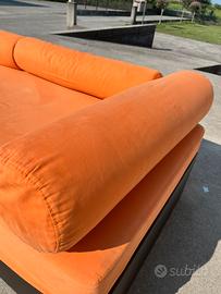 Divano molto bello con fodera arancione cuscini a forma di cilindro rimovibili