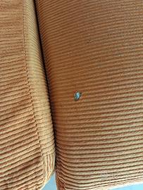 segnalo piccola bruciatura in una seduta e tessuto rovinato in un angolo del bracciolo ( vedi foto)