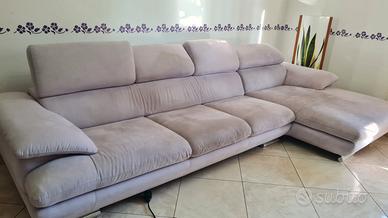 Divano arredo tre posti più chaise longue in tessuto microfibra con poggiatesta ribaltabili. vendo ad euro 900