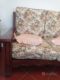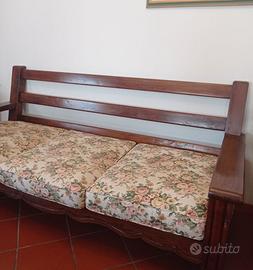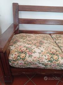 Divano arte povera di pregio, di falegnameria artigiana toscana, massello castagno lucido adatto casale, hotel, agriturismo, sala ampia. Cuscini e schienali sfoderabili e lavabili in cotone stampato. Si trova a Bagno a Ripoli (Firenze) Ritiro a carico dell'acquirente. 1 divano: 3 posti comodissimi 207x88cm altezza totale 95 cm altezza seduta con cuscino 50cm Bracciolo 88x12 cm Prezzo: 800€ (v, altro annuncio per 2 poltrone coordinate. Se divano e poltrone sono acquistate insieme, il prezzo per i 3 pezzi è di 1300).
