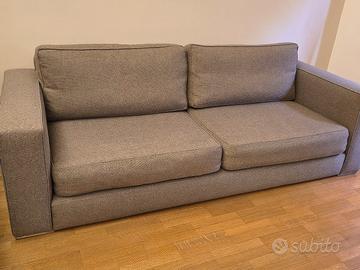 Divano 3 posti misure: 230 x 95 x 60 Seduta h 40 Di ottima manifattura artigianale, tessuto canapone, colore grigio medio. Imbottitura cuscineria in misto piume d'oca. Solo ritiro, no spedizione.