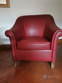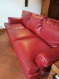 Divano artigianale pelle primo fiore rosso cartier L. 220 x 105 + 2 poltrone stessa manifattura L. 80 x 80 in più che buone condizioni