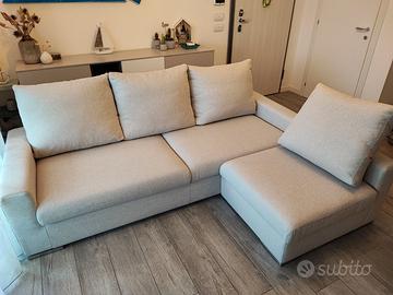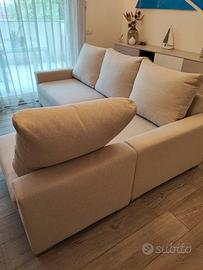 Divano artigianale in stile minotti del 2019, composto da blocco divano da 4 posti, più poltrona separata. Completamente sfoderabile, senza segni di usura, tenuto sempre coperto.
