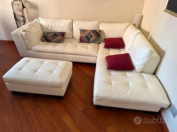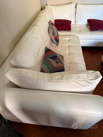 Vendo divano fatto realizzare da un artigiano in morbidissima pelle bianca. Il divano è a elle con chaise longue e isola. Dimensioni 2,8 x 2 metri circa