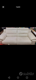 Divano 3 posti colore panna con puff davanti. Un po' usurati entrambi come si vede dalle foto