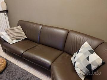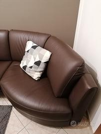 Vendo divano pelle marrone angolare tondo,divisibile in due pz lato curva per trasporto, seduta e schienale non smontabile, un pezzo unico,