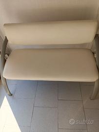 Divano attesa usato, larghezza 120cm. altezza 80cm. seduta 45cm. ideale per salone parrucchiera per postazioni caschi. Completamente smontabile, trasportabile con una utilitaria. Presenta come da foto un piccolo scortico sulla spalliera. Solo ritiro a mano.