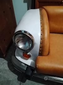 Vendo divano che èrealizzato con la carrozzeria originale di una macchina, in pelle color Cognac, con luci, ideale per la casa, locali , con il suo stile retrò unico e ineguagliabile, questo divano donerà vigore al tuo arredo, per interni freschi e solari!Pub, Bar locali che cercano di creare un ambiente distintivo e accogliente, spesso con elementi di design unici. Trattandosi di carrozzeria originale, ogni modello puo' variare in piccoli particolari costruttivi. Misure Larghezza 1,50
