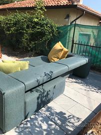 In tessuto verde, dotato di meccanismo che muove lo schienale da orizzontale a verticale. Ogni seduta si estrae a chaise langue. Quando sono estratte tutte diventa letto singolo. Le misure sono nelle foto.