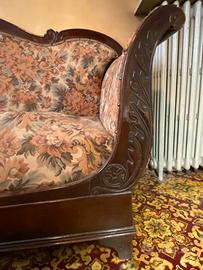 Vendo bellissimo divano in legno massello di fine 800 con finiture di pregio ( come visibile dalle foto) Misure: lunghezza 170, profondita 60). No spedizioni, solo consegna a mano.