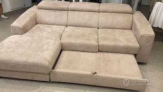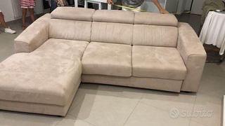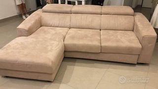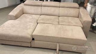 Vendo divano modello poltrone e sofà con chaise longue color sabbia contenitore, poggia testa regolabili dimensioni lunghezza 237, isola 180, seduta 60 (dicembre 2021) visto è piaciuto.