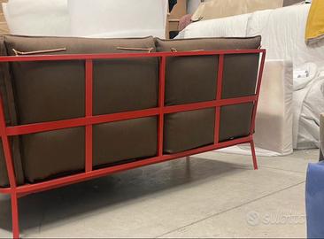Vendo splendido divano modello Basket di Cappellini, disegnato dai celebri fratelli Bouroullec. Il divano è NUOVO, mai usato, in condizioni impeccabili di fabbrica. Questa versione esclusiva presenta un ricercato contrasto cromatico: la struttura architettonica in metallo verniciato Rosso avvolge i morbidi cuscini in tessuto Marrone, rendendolo un pezzo unico e di grande personalità per qualsiasi living o studio di design. Dettagli dell'oggetto: Stato: Nuovo (pari al negozio, nessun segno di utilizzo). Larghezza: 190 cm (versione 2 posti large). Profondità: 90 cm. Altezza: 82 cm (versione schienale basso). Colore: Struttura Rossa / Cuscini Marrone. Caratteristiche: Cuscini completamente sfoderabili; design iconico che garantisce estremo comfort e privacy. Prezzo: € 3.900 (Prezzo di listino attuale: oltre € 6.000).