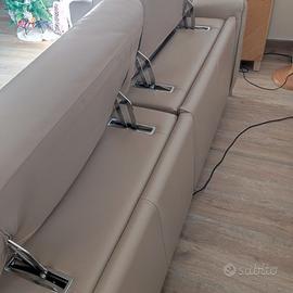 Bellissimo divano in vera pelle, grazie a due pulsanti sul retro dei braccioli, si reclinano le sedute, in maniera indipendente. Misura 190 cm di lunghezza e 110 di larghezza e ha i piedi in acciaio. È estremamente comodo e bello, la pelle è morbida e senza rotture, anche perché l'ho sempre tenuto coperto da teli copridivano. È moderno e alli stesso tempo classico. Ovviamente va ritirato sul posto, è molto pesante, ma il vantaggio è che si divide in due parti, rendendolo più facile da trasportare. Si trova al primo piano di una villetta, dove si può parcheggiare sotto. Prezzo non trattabile.