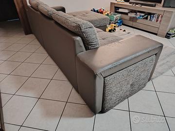Vendo divano a L in tessuto. Seduta estraibile e puff incorporato. Condizioni discrete. Misure: lunghezza cm 280 x profondità 155 x altezza 83.