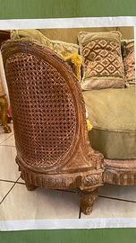 Divano bergère Luigi XV in legno intagliato con pa