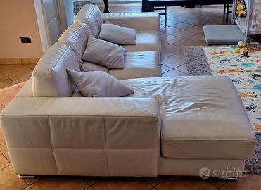 Divano Berloni 3 posti con isola, in vera pelle color panna. Dimensioni 245 cm x 102 cm, lunghezza isola 160 cm. Disponibile da metá aprile.