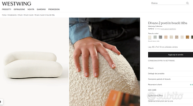 Divano di Design bianco bouclè. Ingombro 190x120cm Acquistato su Westwing nel 2024, utilizzato pochissimo: come nuovo.