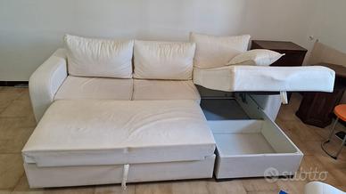 Vendo per cambio arredo divano bianco con chaise longue contenitore e poggia piedi estraibile, utilizzabile come letto misure 248x93 chaise longue 160
