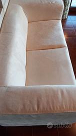Divano bianco effetto scamosciato, doppia seduta, praticamente nuovo.