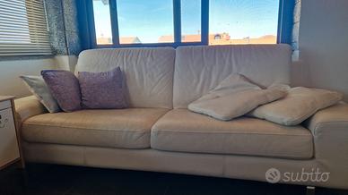 Vendo divano bianco in pelle, completo di cuscini e puof (non visibile in foto, ma se chiedete ve le mando) le misure del solo divano sono:
