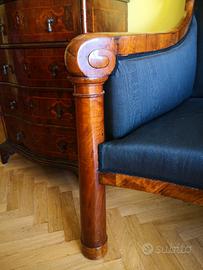 In 45 anni di acquisti in giro per l'Italia e l'Europa, non avevo mai "sbattuto" contro un divano di questa fattura, osservato solo su qualche rivista di antiquariato di alto livello. Così quando lo incontrai fu un vero colpo di fulmine, e non ci lasciammo più. Mobile di mia proprietà da oltre 20 anni.
