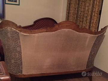 Vendo bel divano in legno di noce, rivestito in tessuto jacquard, L cm 160-180, H cm 110.