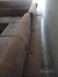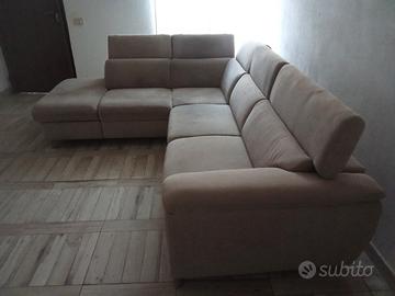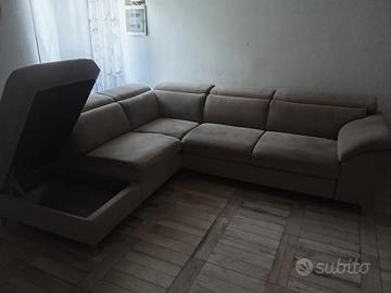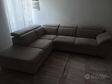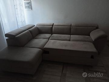 buona sera. causa trasferimento vendo divano/letto ad angolo con penisola/contenitore. il divano e in tessuto antimacchia di colore grigio perla, 5 comodissimi posti a sedere (profondità seduta 50 cm), ed ogni posto a sedere è dotato di poggia testa regolabile in più posizioni. le misure sono: lunghezza 2 metri e 20 cm (lato contenitore) per 2 metri e 70. come accennato in precedenza è possibile trasformarlo con un semplice gesto in un comodissimo letto le cui misure sono: lunghezza 1 metro e 80 per 1 metro e 30. p.s. prezzo trattabile....