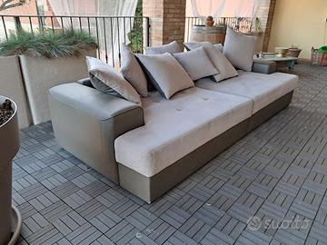Togliendo i cuscini si trasforma in un letto a una piazza e mezza, grazie alle sue grandi dimensioni.