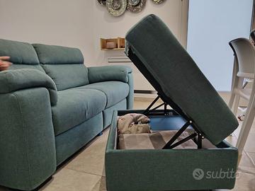 Dotato di comodissimo pouf contenitore (66 X 80 X 43): è un vero pouf di servizio che permette di riporre con ordine coperte, riviste e giochi in un pratico spazio, facilmente accessibile.