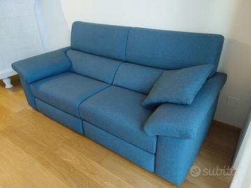 Nuovo divano blu con sedute allungabili di 30 cm e poggiatesta regolabili, cuscini inclusi. Dimensioni: 210 x 100 x 100 (L/P/A) Prezzo di listino: 2000 €