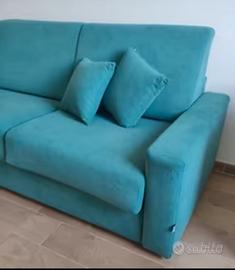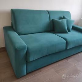 Vendo Divano letto 3 posti PALMER aquistato da RICCI CASA completamente sfoderabile e moderno , gli schienali sono dotati di un vano dove è possibile alloggiare i guanciali del letto. misure L 195 P 95 H 91 cm. Meccanismo per divano-letto “Santiago” a 2 pieghe, con rete elettrosaldata e sistema ad apertura tramite trazione dello schienale. Completo di letto con rete elettrosaldata e materasso H 17 cm. Tessuto .