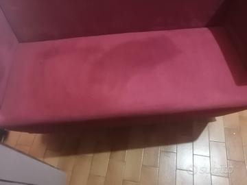 Divano bordeaux, elegante, con manico posteriore e piede con ruote per lo spostamento facilitato. Divano di classe, cedo per cambio arredamento dati i nuovi lavori nella stanza/salotto.