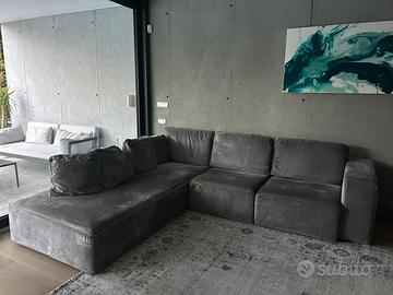Divano in perfette condizioni marca Valentini modello Box dimensioni 287 x 250 colore grigio, cuacini sfoderabili e in piuma, sedute regolabili in lunghezza