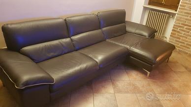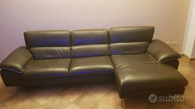 Divano 4 posti più penisola, in vera pelle , colore testa di moro , semi nuovo, vendo per cambio residenza