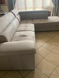 Divano letto angolare sx, con contenitore. Letto estraibile, rivestimento in tessuto. Dimensioni L 278 H 95 P232 Colore grigio chiaro