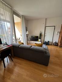 Divano angolare con pediera estraibile Color grigio antracite ,praticamente nuovo