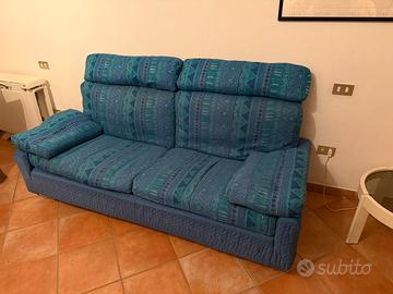 Divano Busnelli completamente sfoderabile a fantasia di colore blu.