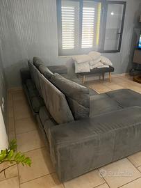 Vendo divano poltrone e sofà . Con chaise lounge e seduta ampia la seduta si puo anche accorciare come da foto . Nuovissimo , tessuto microfibra grigia lavabile e sfoderabile . Il divano e lungo 286cm e la chaise longue 198 cm . Il divano è abbastanza grande . Vendo solo in sardegna e per chi fosse interessato si deve organizzare per il trasporto . No perdi tepo