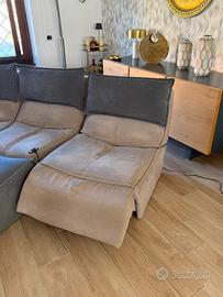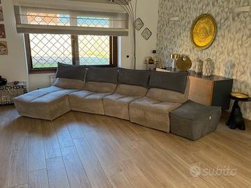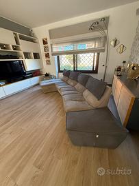Vendo divano modulare Calia Italia Hip-Hop totalmente sfoderabile in tessuto idrorepellente, antimacchia e antiacaro, resistente allo sfregamento, le fodere si possono lavare anche in lavatrice, la struttura dei divani sono in legno multistrato e una seduta e’ in versione relinear con meccanismo motorizzato elettricamente mediante comando touch pad posizionato lateralmente alla seduta. La chelong e’ lunga 1 .55 e 82 cm di altezza e largo 80 cm. La lunghezza di tutti i divani arrivano a 3,49 cm e sono lunghi 90 cm con lo schienale. Tutte le misure sono visibili sul sito della Calia Italia. prezzo 700 euro la zona e’ Roma vicino a Casal Palocco. Fabrizio.