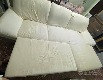 Vendo divano mondo convenienza con isola e parte apribile . Il divano è in ecopelle e il normale uso ha provocato L ‘usura estetica delle diversi parti . Dal punto di vista estetico risulta consumato ma nella struttura è in ottime condizioni . Basta usare un buon copridivano Misure : lunghezza 2,80, altezza 75 e larghezza 120 isola 150. Il divano è divisibile in due . Smontaggio e trasporto a carico dell acquirente
