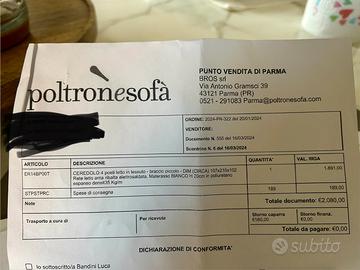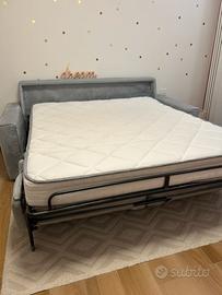 Come da titolo vendo Divano 4 posti letto in tessuto Dimensioni 107x216x102 Rete letto anta ribalta elettrosaldata. Materasso Bianco H 20 cm Completamente sfoderabile Il divano comprato nel 2024 è stato tenuto in ottime condizioni e si vende perché ho intenzione di prendere due letti singoli Prezzo leggermente trattabile Solo interessati - No perditempo