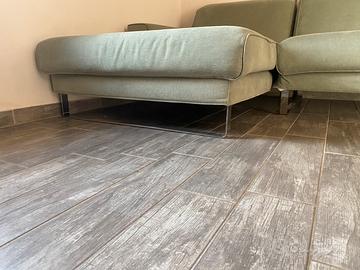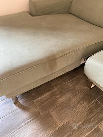 Bellissimo divano color salvia con Chaise Longue destra fatto su misura.