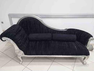 Divano dormeuse chaise longue 3 posti in velluto blu scuro e legno argentato - stile Art Déco. Questa chaise longue è l'ideale per interni in stile moderno o tradizionale. Realizzata in velluto, presenta braccioli su entrambi i lati e un elegante schienale, per la massima comodità e uno stile davvero senza tempo. I piedi in legno massiccio poi, la rendono davvero unica. Prezzo Euro 800,00.