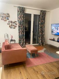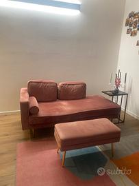 Vendo il mio elegante divano chaise longue in velluto rosa e con chaise longue a sinistra. Il divano ha due anni ed è molto ben tenuto, lo vendo perché abbiamo la necessità di sostituirlo con un divano letto.